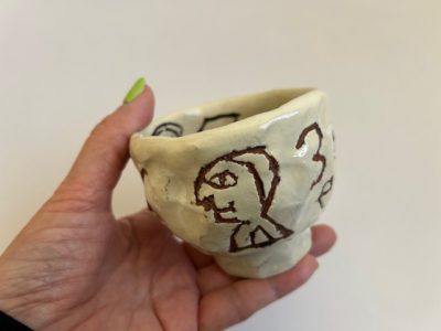 「カワイイカップですね~。オモダさんが作ったんですか?」と言われた。