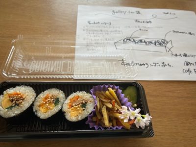 Mさんから心づくしのお弁当をいただきました。ミキコさん、ベッチー、私の夫、私の4つ、