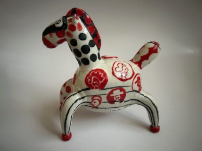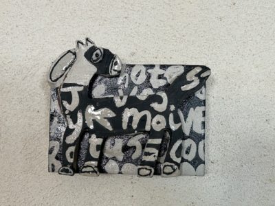 コの字型の陶板に、お馬さんがついています。ラファアートを壁に掛けて楽しめるオブジェ。