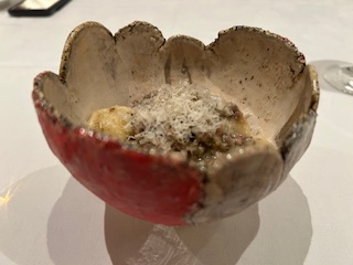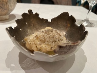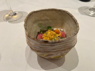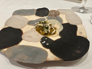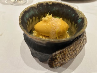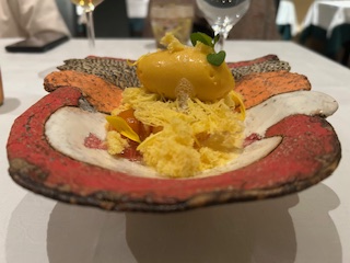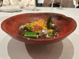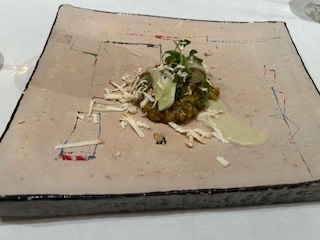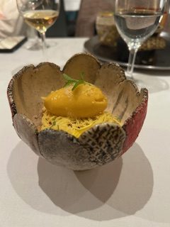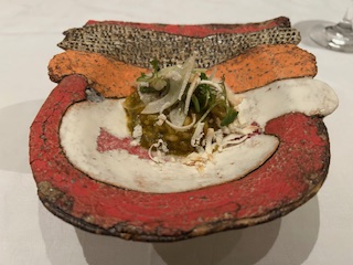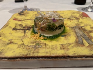 『新玉ねぎのムース タラバガニと赤海老のタルタル』