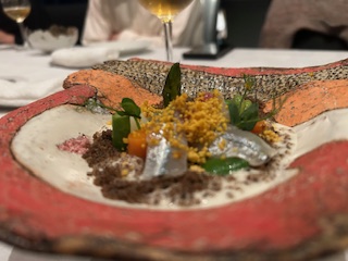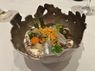 『サヨリと春野菜 ホワイトアスパラガスのピュレ』