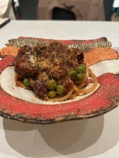 『ブカティーニ 豚肩ロースとグリーンピース マディラ風味のラグーソース』