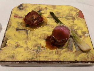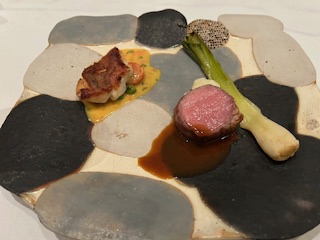 『長崎産オニカサゴのソテー サフランソース』『北海道産仔牛のロースト』