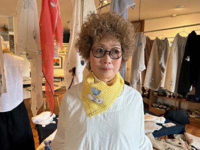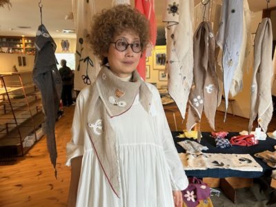 ovejita・やざわしのぶさんもテンではおなじみになりました。今までは寒い時季の巻き物として出展していただいていたので、