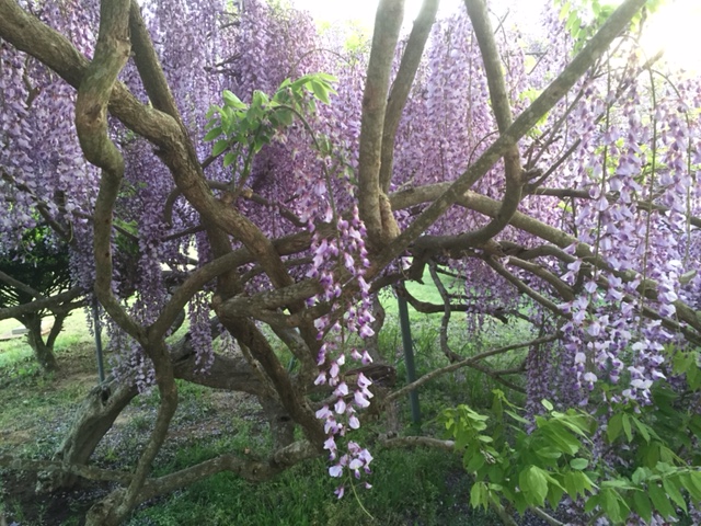 とても見事な低くしつらえた藤の木がたくさんあり、見応えがありました。