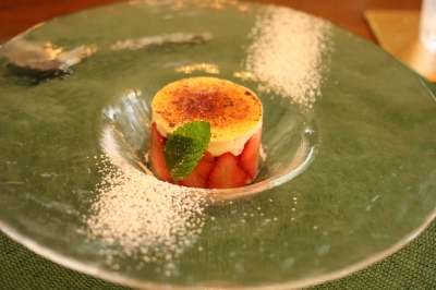 季節のフルーツのサバイヨングラタン、セルクル仕立て