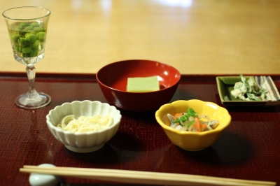 今週がいろんな旬の豆が揃うということで、豆懐石を組んでいただいた。