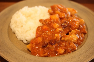 杉村徹さんの木の皿 & “オステリア・ティモーネ”黒水シェフの『恋する豚と豆類のトマトカレー』