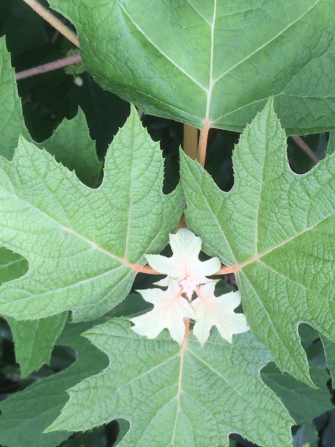 カシワバアジサイの葉っぱの赤ちゃんも同じ形をしている。