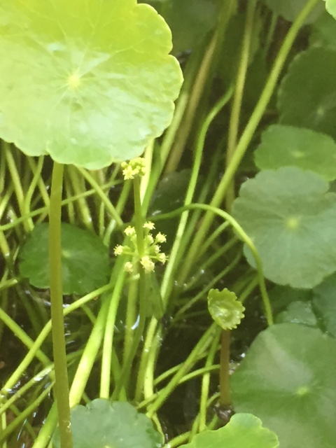 メダカ鉢に浮いているミニマッシュルームが群生してきた。