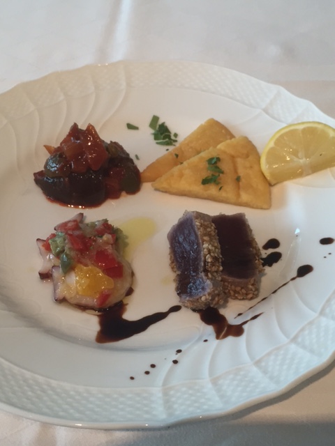 前菜のマグロにはゴマがまぶしてあったし、