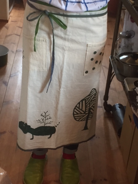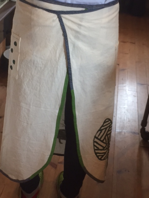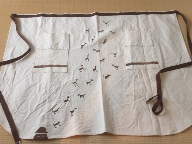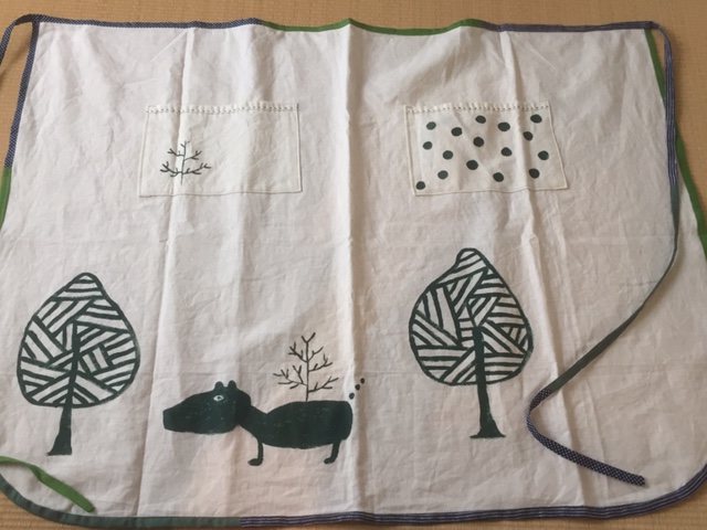 今回のサロンは、ヒモと同じ布でパイピングされています。