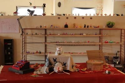 お雛様が各種勢揃い、また縁起物などたくさん出展していただいています。