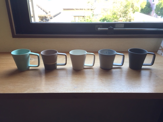 オーバルの皿、大皿、マグカップ、勢揃いです。