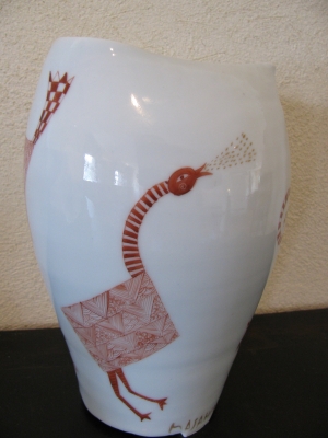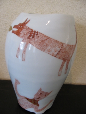 “赤絵”と呼ばれる技法による作品。