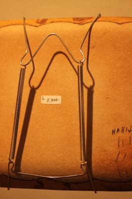 裏側にワイヤーを取り付けて壁に掛けて展示しています。