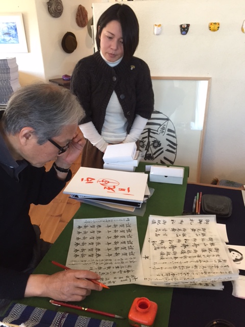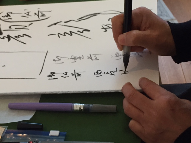 筆ペンを使った書き方も教えていただきました。