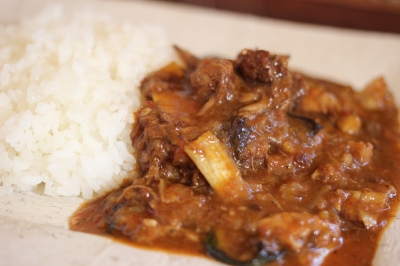 『牛スネ肉のラディッキオロッソのグラーシュ風カレー』です。