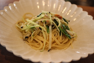 ・パスタ:千筋京(せんきんきょう)水菜と黒大根のオイルソース