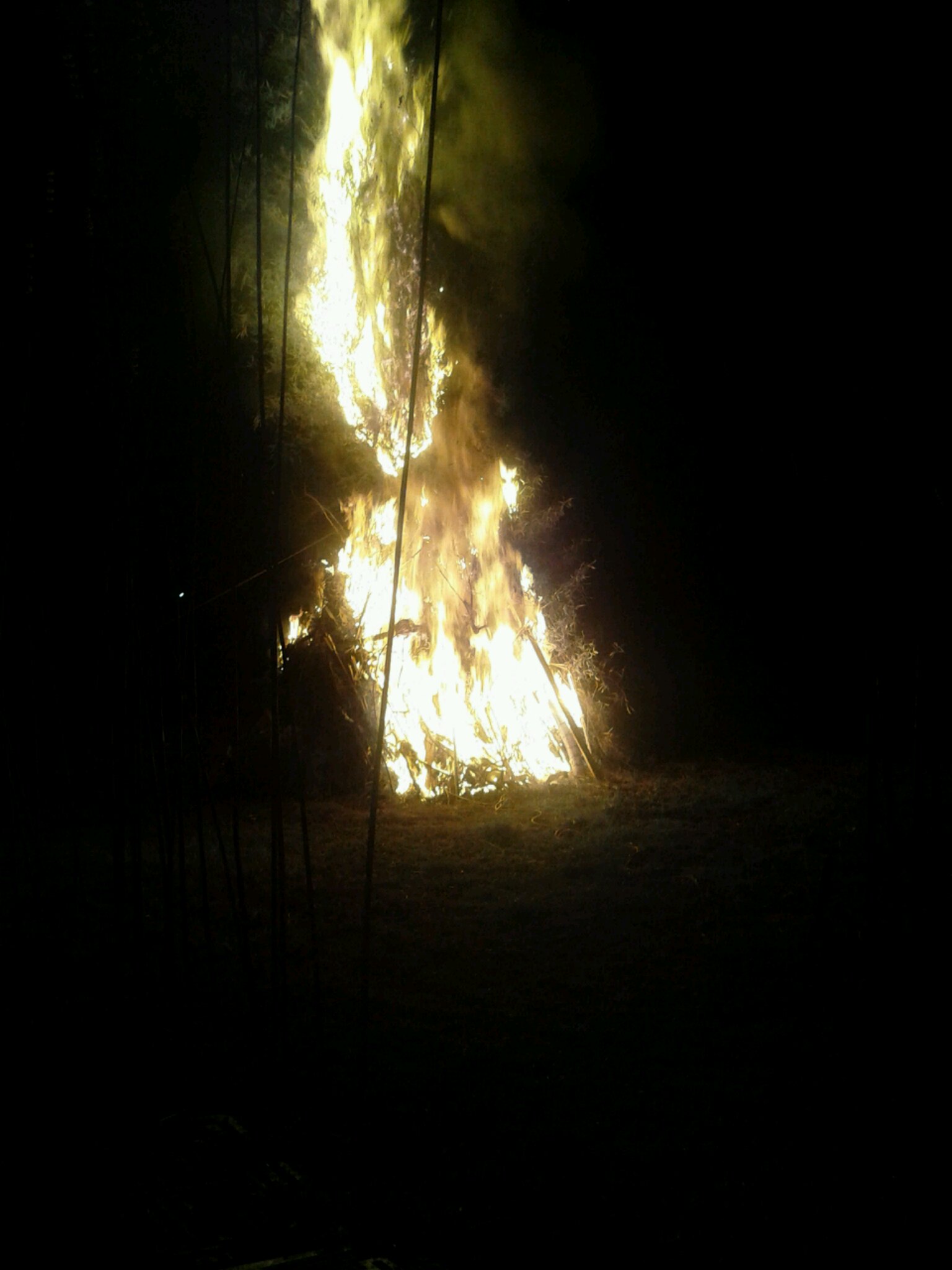 竹でやぐらのように組んだものを燃やし、