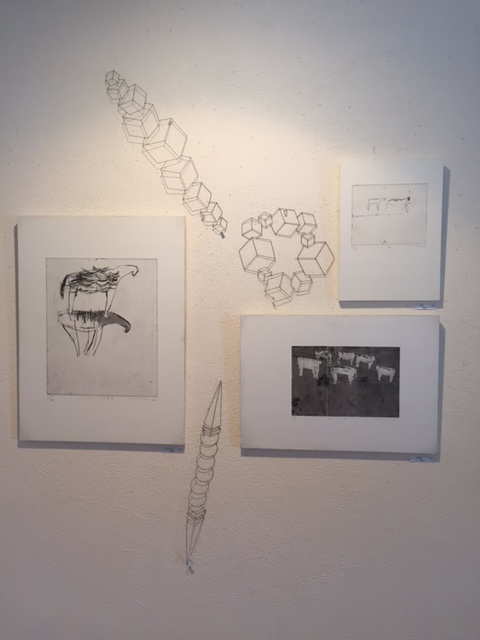 関昌生(ワイヤー)・落合芝地(漆)・富田惠子(版画)3人展 4日め & 関昌生さんのワイヤーオブジェ & 近田スウィーツ・栗田カレー & 明日『楽々日本史の会』