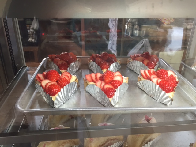 旬のイチゴがショーケースを彩っています。