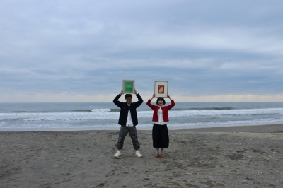 小高靴を履き、増田泰子さんの絵を持って撮影。