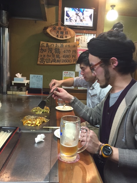菊地さん、松井さんがお好み焼きを焼く過程を動画に撮っていました。(笑)
