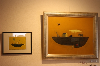 泰子さんの絵には、家や舟がモチーフとしてよく出てきます。