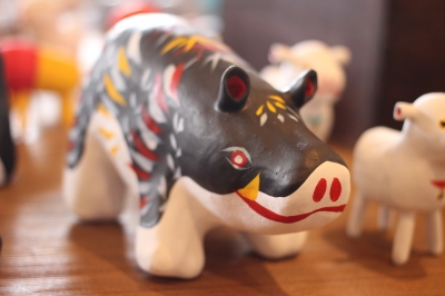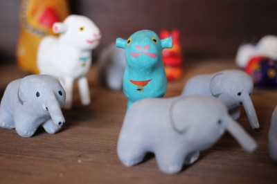 『レッツゴー春夏秋冬』 増田良平(陶)・豊永盛人(張子)・長井さおり(染色) 3人展 3日め & 豊永盛人さんの動物シリーズ & ”シタール”の『バターチキンカレー』