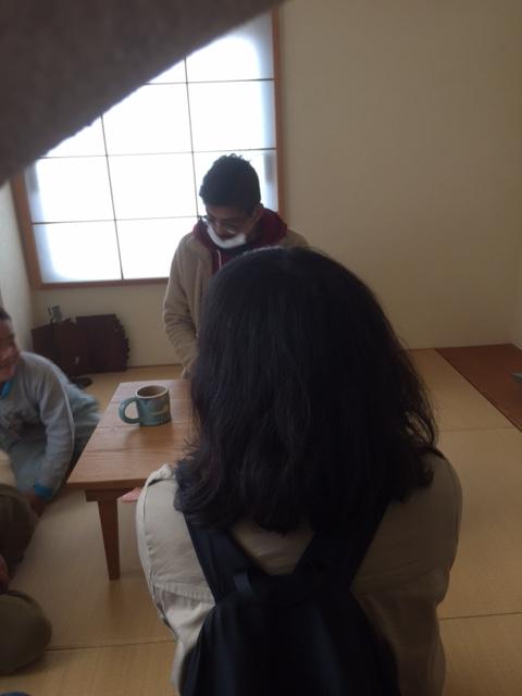 和室のちゃぶ台の向こうに座り、