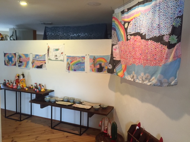 『レッツゴー春夏秋冬』 増田良平(陶)・豊永盛人(張子)・長井さおり(染色) 3人展 4日め & 長井さおりさんの染めの鯉のぼり & ”シタール”の『バターチキンカレー』