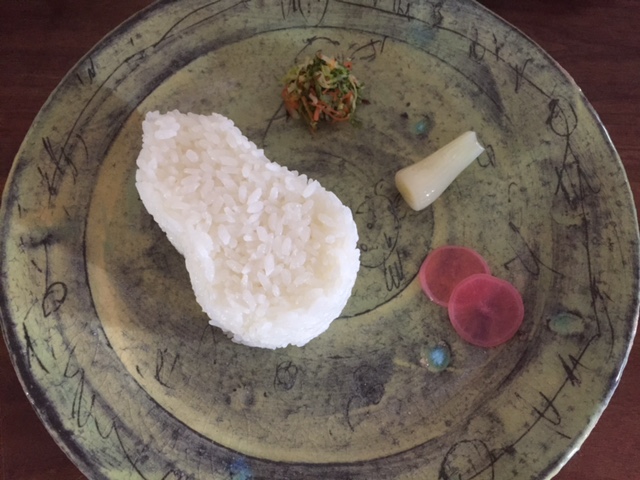 ごはんと付け合わせをどのように盛り付けしようかといろいろやってみました。