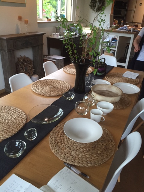 菊地瑠架さんの真鍮カトラリー(明日到着)を広げ料理内容の最終確認。