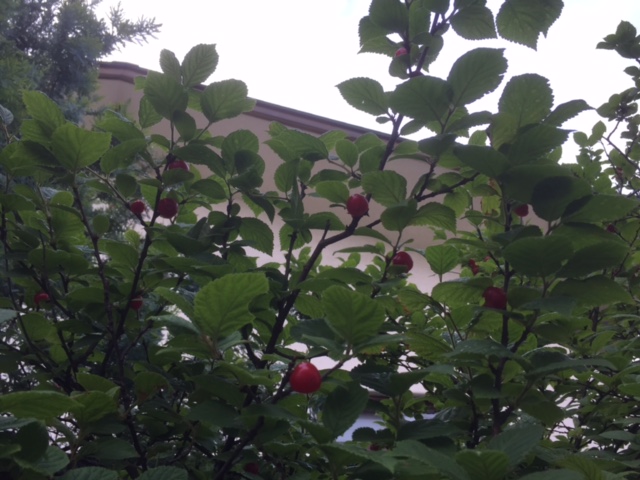 「ユスラウメです。美味しいですよ。」と実を3つほど差し出した。