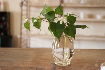 上の画像の右のピッチャーに ドクダミを生けてみました。