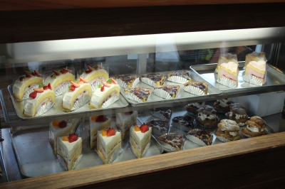 店主の権限(!)でスタッフR2と私のケーキをキープしているところ。(苦笑)