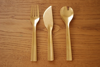 今日は菊地さんの真鍮のディナーセットのカトラリーをご紹介します。