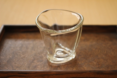 分厚い三角形のグラスはずっしり重いです。