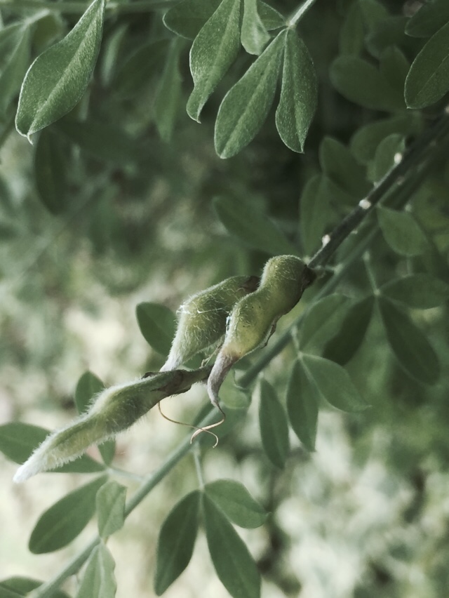 エニシダは豆科なので、実が小さい枝豆のよう。