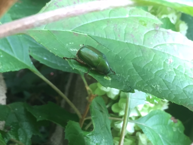 カナブンも葉っぱの色に同化(擬態?)するのか・・・。