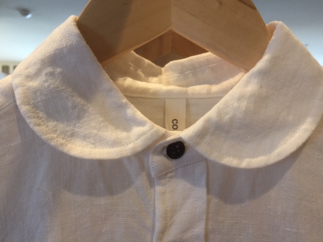 滋賀で織られた麻素材の丸襟のシャツ。