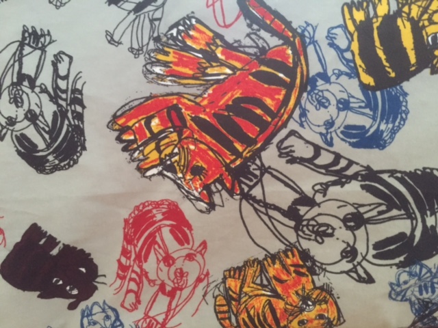 今展でも展開中の”アトリエひこ”の大江正彦さんのトラの絵をモチーフにしたオリジナルプリント。