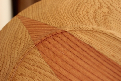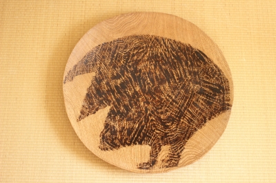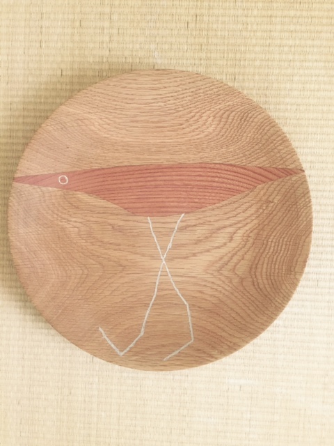 こちらは違う木を接いで絵にした鳥の皿です。