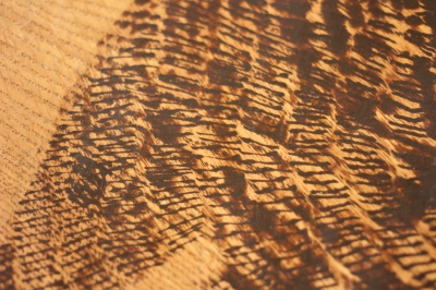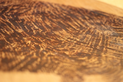 細いノミで削ったところに入った漆の深い色、