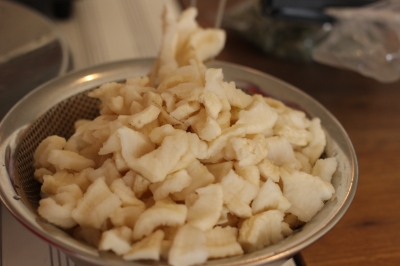 回しかける→ラップする→冷ます→ザルにあげる・・・