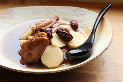 『鶏手羽と山芋の棗の入った紅茶煮』