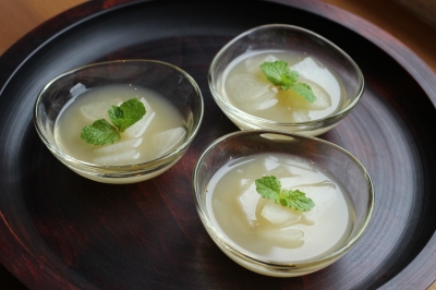 『梨の杏仁風味のコンポート』