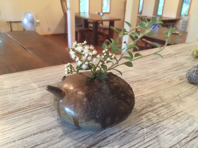 ここのところの長雨で湿気がこもって花材が思うようにドライにならなかったとのこと。