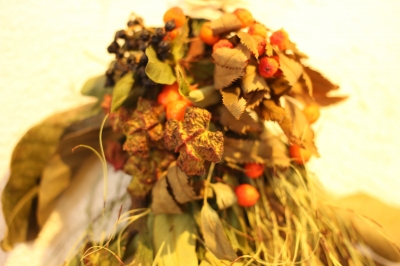 愛情をこめてドライにしていった花材はそのままで絵になりますね。